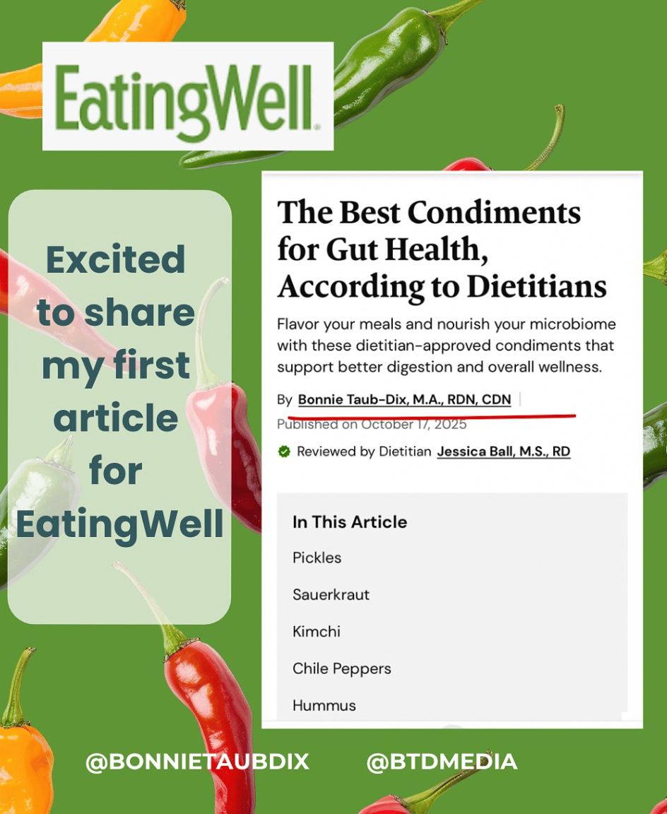 -------------------------------------------------------------------------------------------------- You Asked, I answered: Question: “What do I do when an interviewer asks a question I don’t know how to answer?” Answer: First — don’t panic. It happens to everyone. Try something like: You’re not dodging ... you’re still delivering value. Your job is to keep the interview on track and make sure your expertise shines through clearly. Remember: Great communicators don’t know everything… they just know where they want the conversation to go. 🌟 One of the easiest, least expensive ways to get your name in the news and become a valuable resource for media is just a click away: Btdmedia.teachable.tcom/p/media-masterclass 🌟 You'll also get lots of bonuses including a workbook, a media makeup guide, an audio-video handout and a perfect pitch tip sheet. A Recent Episode of Media Savvy with Bonnie Taub-Dix Podcast: How to Reframe Rivalry: Stop Competing. Start Connecting In our world of media, nutrition and communications, it’s easy to slip into comparison mode. Who got the quote? Who landed the segment? Who signed the brand deal you were hoping for? But here’s the thing… competition shrinks your world. Connection expands it. In this episode, I break down how shifting from rivalry to relationships can completely change your career path. I share real stories, practical reframes, and strategies for turning colleagues into collaborators instead of competitors. Because you never know… today’s intern may be tomorrow’s editor, producer, or decision-maker. Instead of closing doors or burning bridges, let’s build them. 💥 NEWS FLASH 💥 : If we haven't personally connected -- let's do it! Send a DM to @BTDmedia on Instagram if you have any questions about how I can help you or... just hit REPLY to this email! Recent Stories I've Written: Bone health isn’t just about calcium tablets — it’s the small, everyday habits that add up over time. In this piece, I share simple ways to keep your bones strong and steady, from what to eat to how to move. These are easy, doable steps you can start today. Seltzer is bubbly, refreshing… and sometimes confusing. Does it help digestion? Hurt it? Make bloating worse? I dive into what the research really shows, especially when it comes to flavored seltzers and your gut. If you’re a fizz-lover, this one’s a must-read. If you love sauces, spreads, or dips, this one’s for you. I break down which condiments can actually boost flavor and nutrition, and which ones might deserve a lighter hand. You’ll find practical swaps, smart picks, and a few surprises that might already be sitting in your fridge. Recent Stories I Am Quoted In: REAL SIMPLE: Need To Lower Your Blood Pressure? A Study Reveals This Simple Beverage Show Promise EATINGWELL: The #1 Mistake You're Making When You Take Vitamin D P.S. Have you ever watched a news segment with the sound off? Try it sometime and you’ll notice how a commentator’s clothing or jewelry can speak louder than their actual voice. it’s amazing how fast a busy shirt or noisy necklace can steal the spotlight. That’s why I always recommend solid, jewel-toned outfits for on-camera work. They minimize distractions and let your message be what comes through clearly. Links to the Media Savvy Podcast: _______________________________________________________ Know someone who’d enjoy a little media confidence in their inbox? Hit forward and help them feel a little more media savvy today. 🎤 💥💥💥 |
