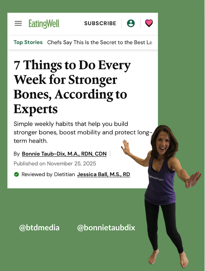 Hi Reader! As we wrap up this year, I want to take a moment to wish you good health, happiness, and everything you wish for yourself in the year ahead. I don’t usually talk about politics, and I won’t start now, but it’s impossible not to notice how chaotic our world can feel lately. All the more reason to take care of ourselves ... gently, realistically, and in ways that still leave room for joy. That’s always been my goal with this newsletter… to be a trusted place where you can find guidance that’s doable, not daunting. A place that helps you feel a little more confident in the kitchen, a little more informed at the grocery store, and a lot kinder to yourself as you navigate everyday life. And since this is the last newsletter of the year, I did exactly what I do when I pack for vacation… I overpacked. Inside you’ll find a suitcase full of nutrition news you can actually use in the new year, from stories I wrote (like the best condiments for your health, how to build stronger bones, and what really happens to your gut when you drink seltzer) to stories I was quoted in, including the best ways to help lower your blood pressure and the number-one mistake people make when taking vitamin D. I hope these pieces help you feel more grounded, more supported, and more inspired to take good care of yourself. And a quick heads up… in the new year I’ll be making a few exciting updates behind the scenes so I can tailor this newsletter even better for you. Nothing to do yet — just know I’m working on ways to bring you even more helpful content in 2026. Happy New Year and thank you for being here with me. Until next time, Bon P.S. Got a question you want me to cover in the next newsletter? Just hit reply ... your curiosity often sparks my best content. __________________________________________________________ Best Condiments for Your HealthIf you love sauces, spreads, or dips, this one’s for you. In this story, I unpack which condiments can elevate your meals with flavor and nutrition, and which ones are worth using a bit more sparingly. From classics like mustard and salsa to newer favorites, I walk you through how to build a condiment shelf that works with your goals instead of against them. You might even discover a few delicious ways to upgrade your everyday meals without overthinking it. For more, see the full story here on EATINGWELL. Fibermaxxing: Is Too Much of a Good Thing OK for Your Body? The short answer is, not really. But there is some research that might be “Fibermaxxing” became one of the buzziest trends of the year, and in this piece I explain what it really means… and what it doesn’t. I break down how adding more fiber-rich foods can help you feel fuller, support digestion, and keep blood sugar more steady — without turning everyday eating into a project. You’ll find simple ways to bump up your fiber intake naturally, deliciously, and without the side effects that can come from overdoing it. If you’ve been curious about this trend, this story gives you the clarity you need. If you’re curious, you can check out the full article in EATINGWELL. What Happens to Your Gut When You Drink Seltzer?Seltzer is bubbly, refreshing… and sometimes confusing. Does it help digestion? Hurt it? Make bloating worse? I break down what the research really tells us about carbonation, gut health, and how different flavors or ingredients may affect your system. Whether you’re a die-hard seltzer fan or someone who feels a little too fizzy after a can, this story helps you understand how to enjoy it comfortably and mindfully. It’s a balanced, no-guilt guide for anyone who loves their bubbles. If you want practical advice about whether seltzer is good for you, check out the full article in EATINGWELL. 7 Things To Do for Stronger Bones Bone health isn’t just about calcium tablets ... it’s a lifelong, layered process. In this piece, I share seven simple habits that protect and strengthen your bones at every age, from smart food choices to the types of movement that matter most. You’ll learn how daily routines, even the small ones, can improve bone density, support stability, and help you stay active and confident as you move through life. These are easy, doable shifts you can start today. Read this story on EATINGWELL. A Recent Episode of Media Savvy with Bonnie Taub-Dix Podcast How to Reframe Rivalry: Stop Competing. Start Connecting In this episode, I break down how shifting from rivalry to relationships can completely change your career path. I share real stories, practical reframes, and strategies for turning colleagues into collaborators instead of competitors. Because you never know… today’s intern may be tomorrow’s editor, producer, or decision-maker. Instead of closing doors or burning bridges, let’s build them.